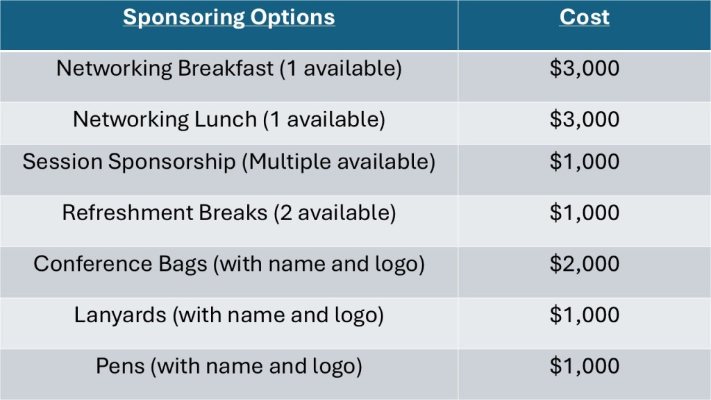 Sponsorship and advertising opportunities include conference tote bags, parking for attendees, conference lanyards, conference program ads, banner ads, conference tote bag inserts, sponsored conference sessions, and much more! Diamond, Platinum, Gold, Silver, and Bronze Level Sponsors can access even more engagement opportunities!